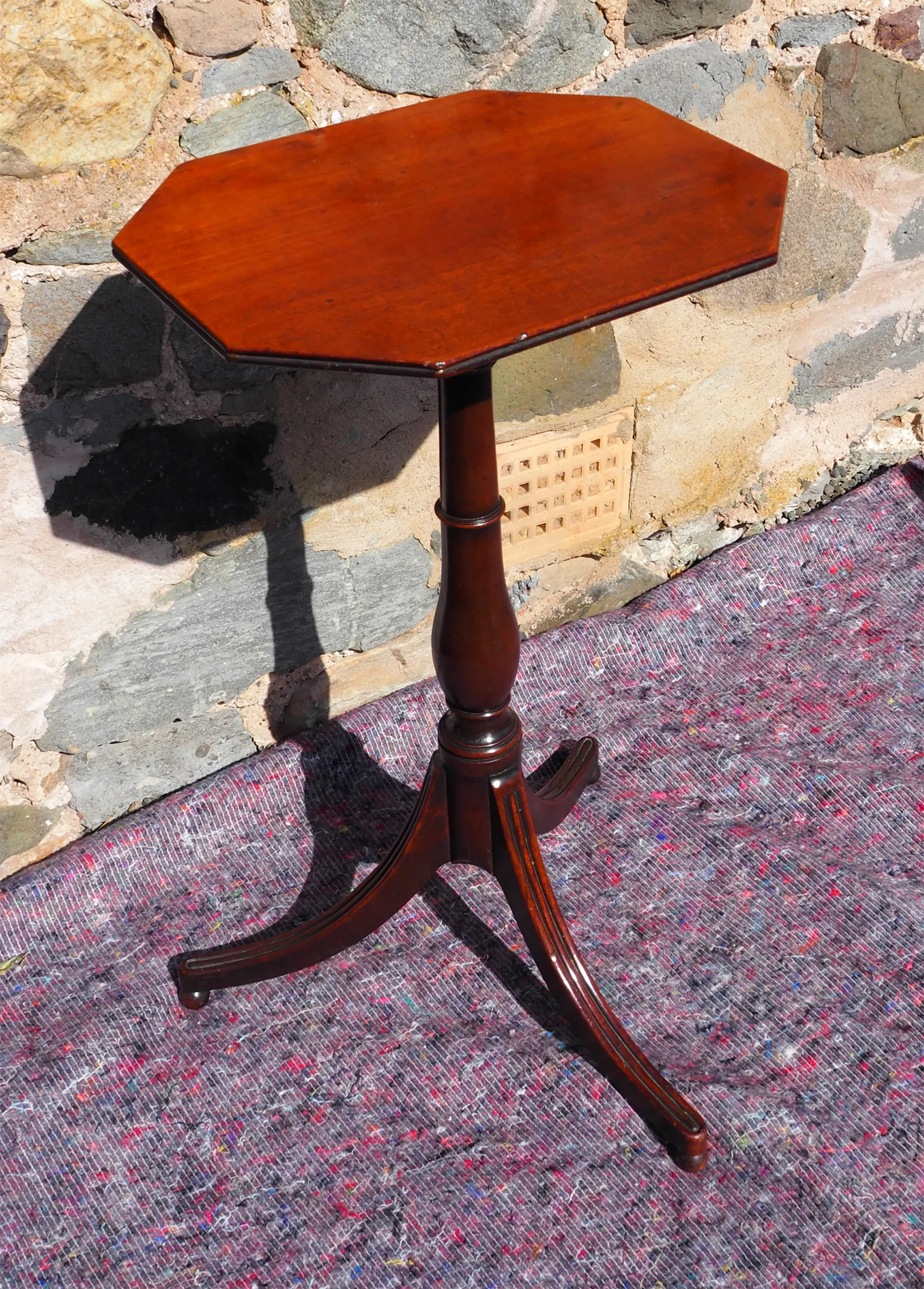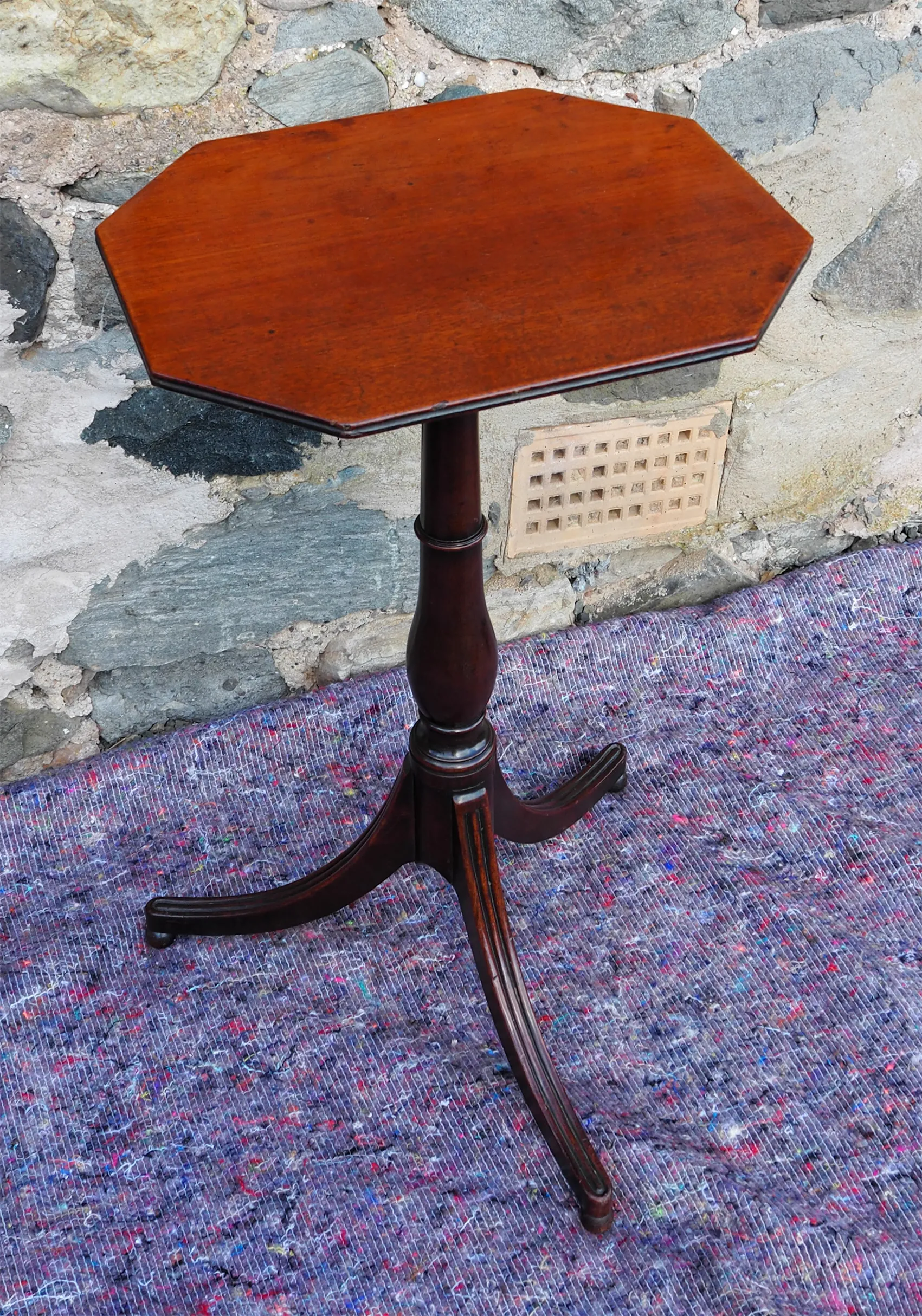 Good clean early 19th century Georgian Scottish mahogany tripod wine table. Nicely turned stem with swept out legs, moulded on the top with turned ball feet. The thin top has a double reed moulding around the edge. All in very good original condition. No damage, breaks or repairs.