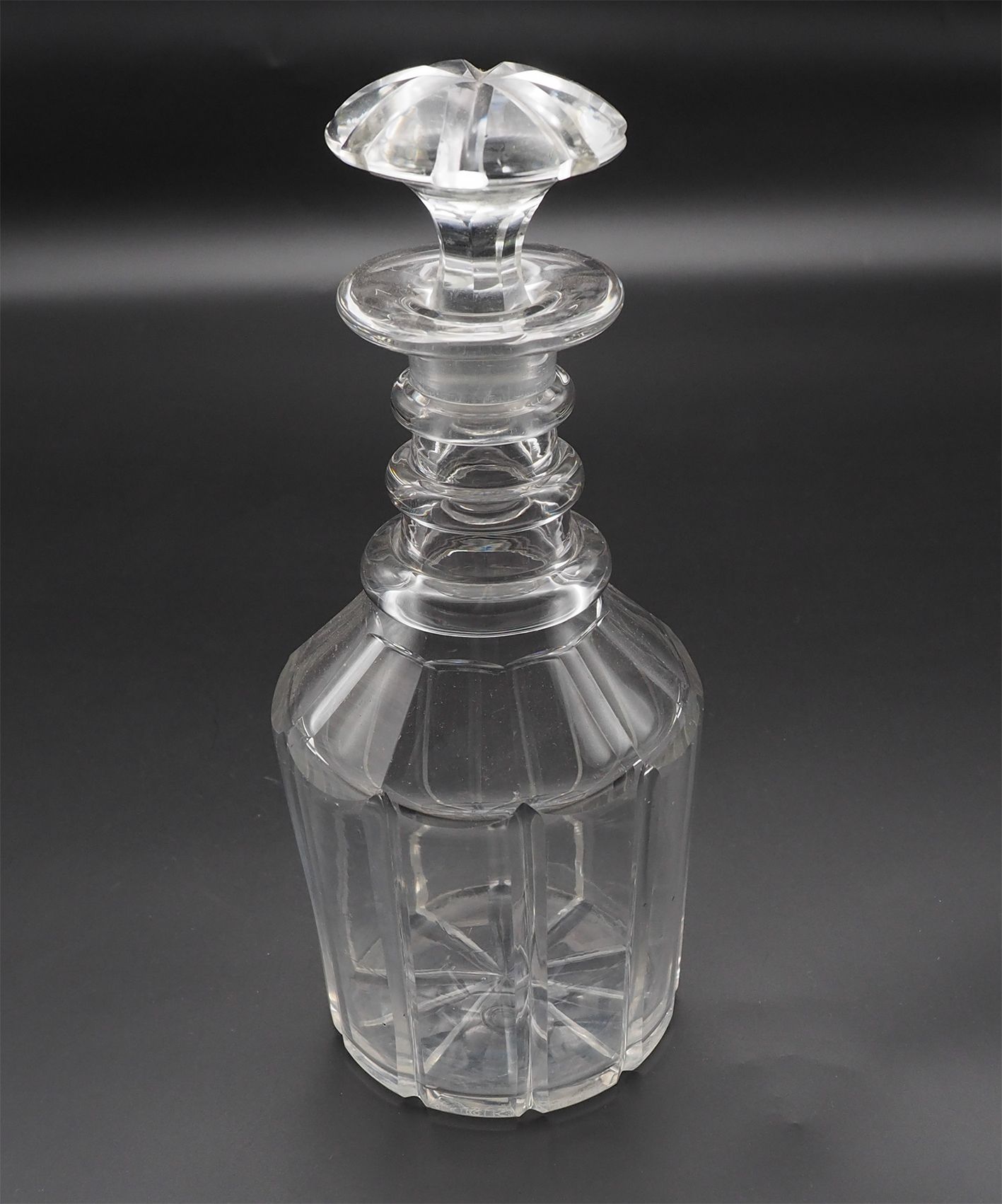 Good all original early 19th century Regency 3 ring cut glass decanter with original stopper. The decanter is a nice shape with a star cut base. The stopper with similar star cut decoration to the top. Good condition with no damage.
