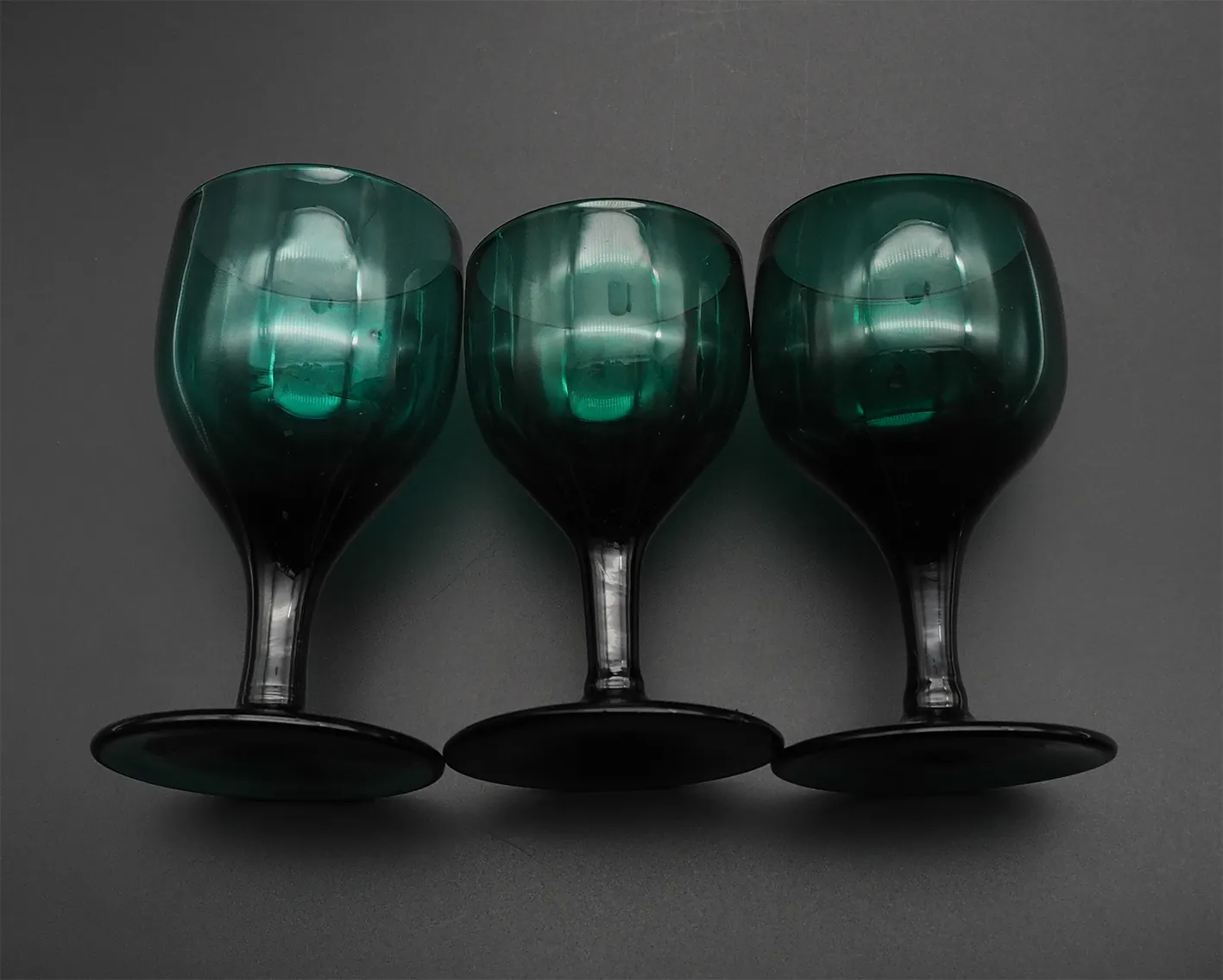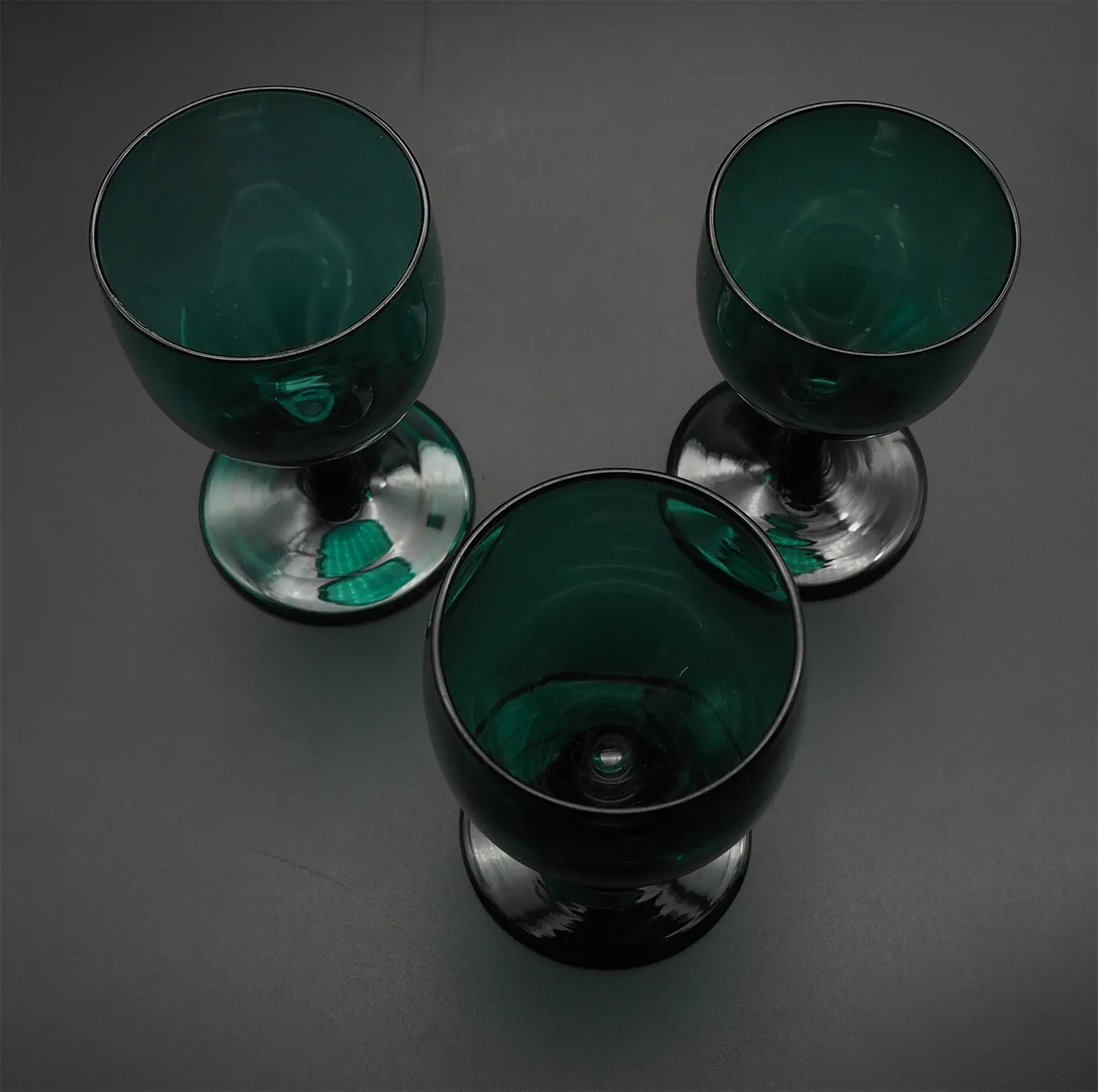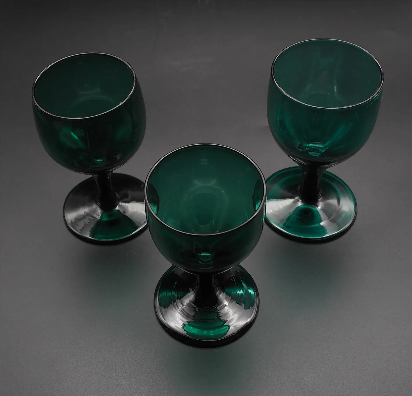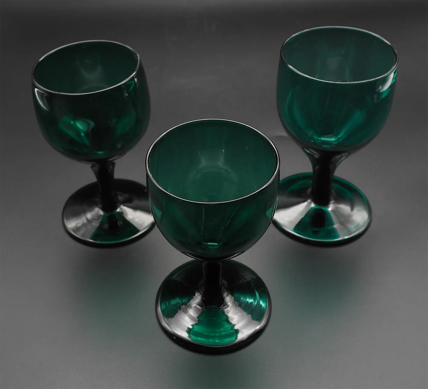Three very similar early 19th century Georgian green wine glasses of great style and in very good condition. Probably Bristol. Please note there are not a set as they are all very slightly different.