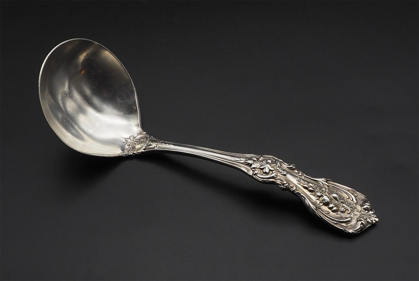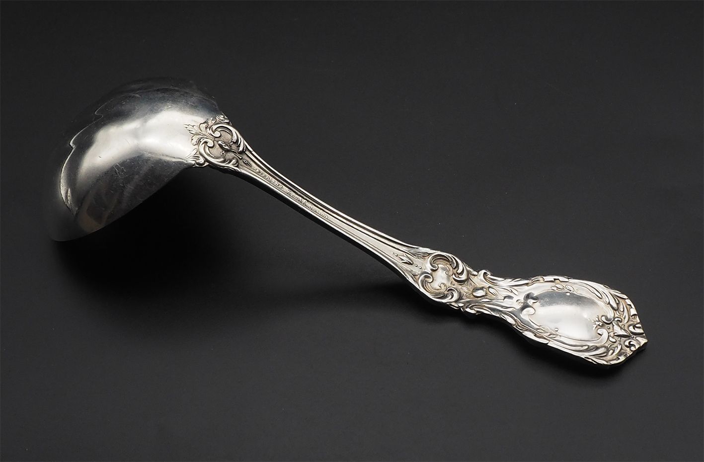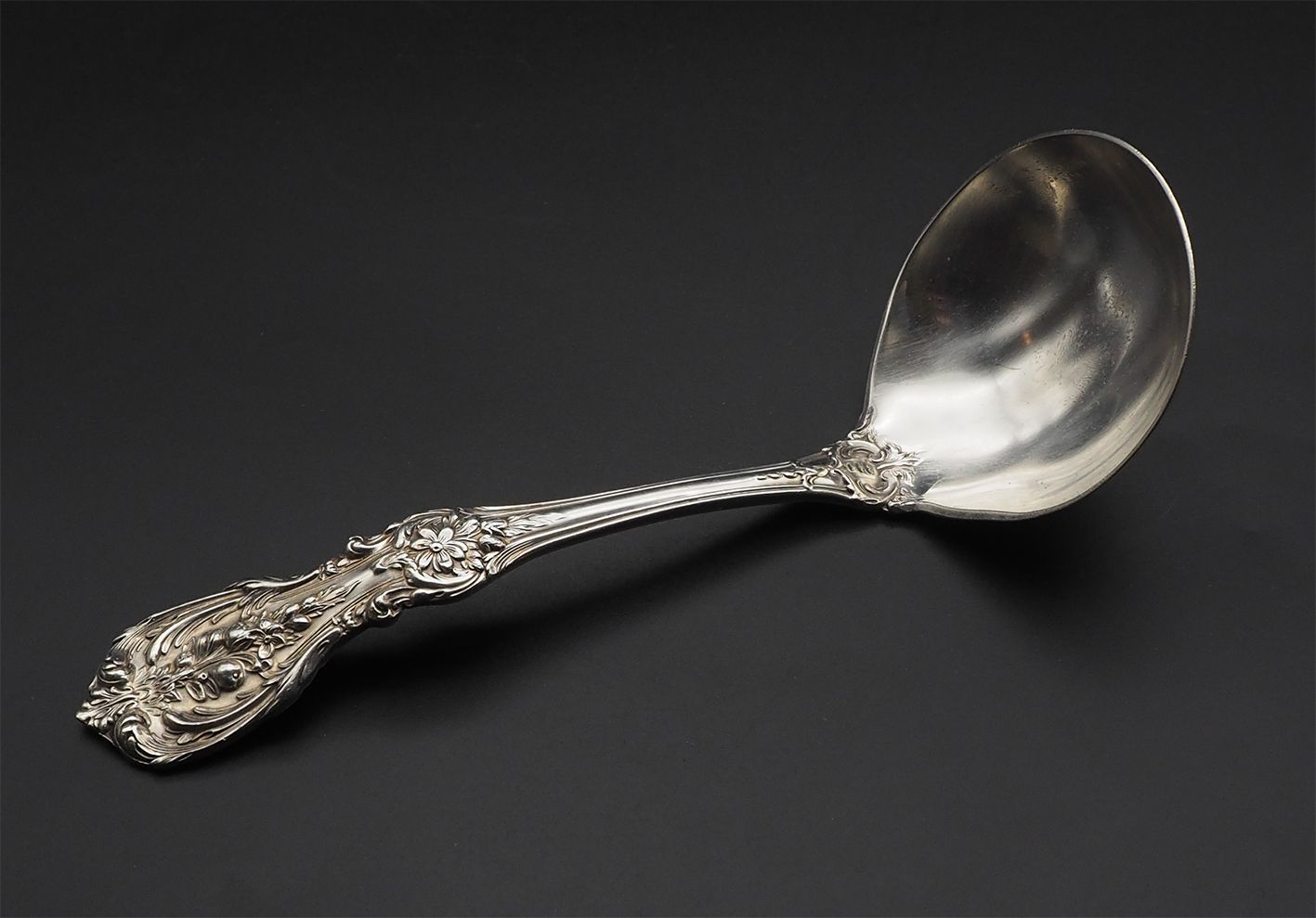 Heavy grade late 19th / early 20th century American Sterling silver sauce ladle by REED & BARTON. French Renaissance style. Fully marked.