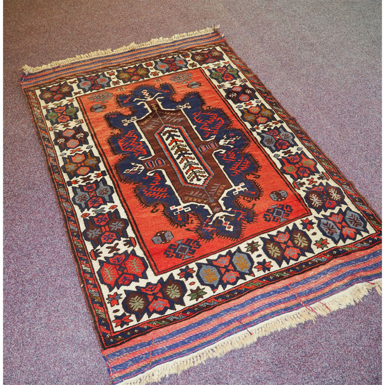 Gorgeous vintage 1920's Tajikistan tribal wool rug of really pleasing design. Both flat weave and knotted manufacture. Hand made all wool tribal rug of generous size. Very good condition with no damage. Recently washed so ready for the home. Please see other listing of smaller version from the same source.